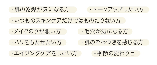 - いつものスキンケアだけでは物足りない方:スキンケアの効果を底上げします。